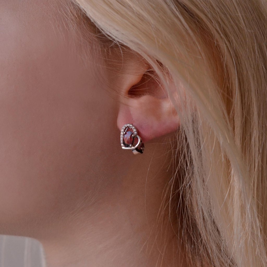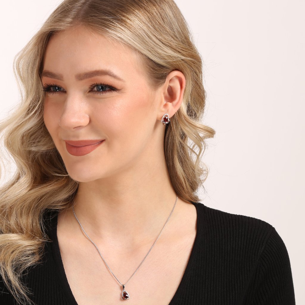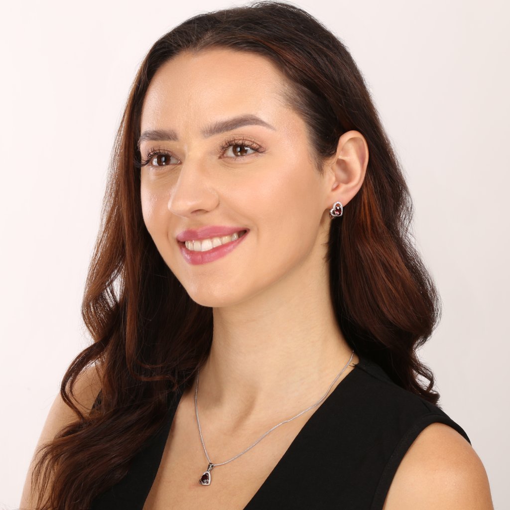 Urobte radosť svojej manželke alebo priateľke s týmito striebornými náušnicami v tvare srdca s granátom.