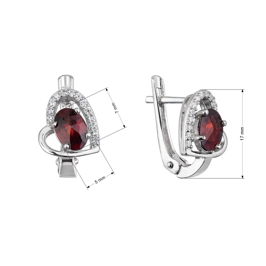 Strieborné náušnice 11496.3 v tvare srdca, vo vnútri ktorého je umiestnený pravý červený granát . Srdce je navyše osadené bielymi zirkónmi. Náušnice sú vyrobené zo striebra o rýdzosti 925/1000 vrátane povrchovej úpravy ródiom. Ródium ochráni šperk proti nechcenému sčernaniu, zožltnutiu i poškriabaniu.