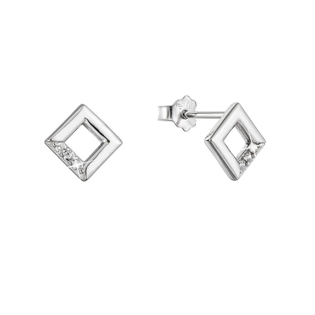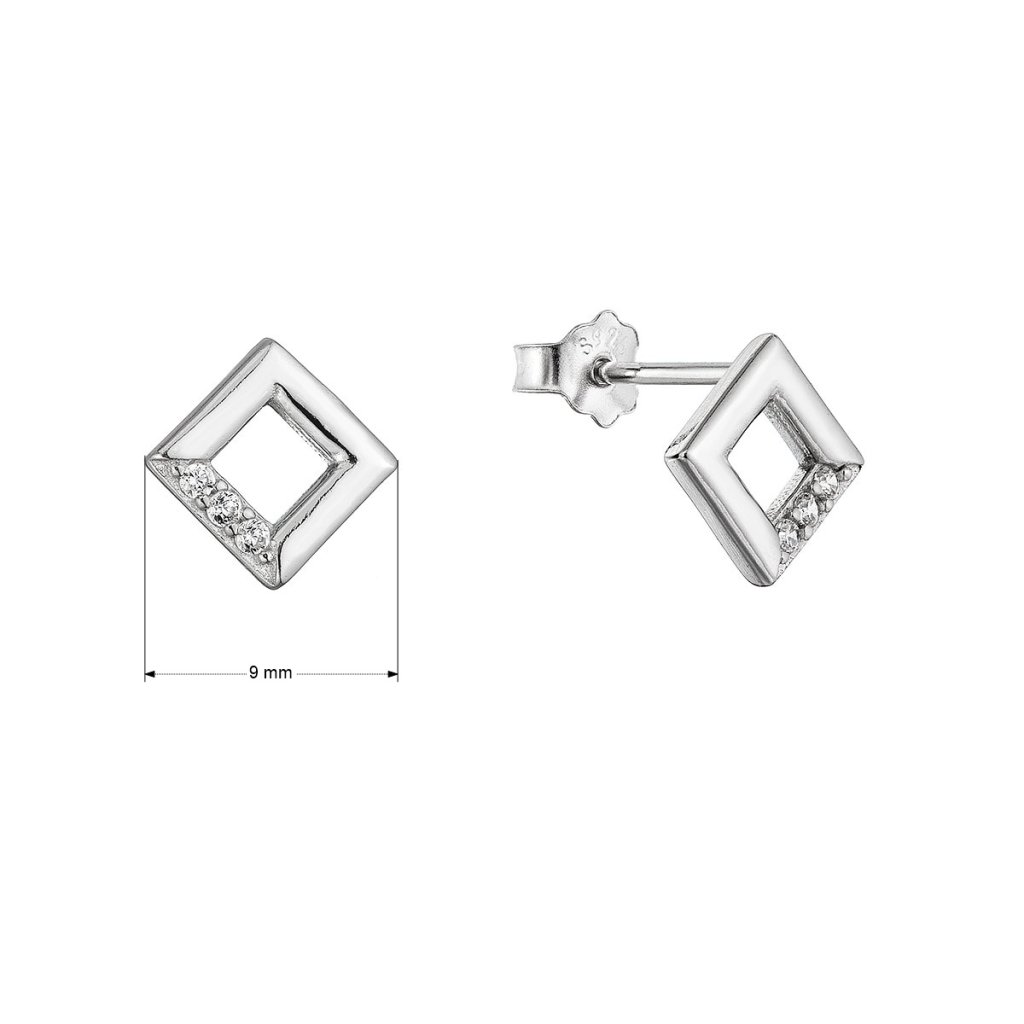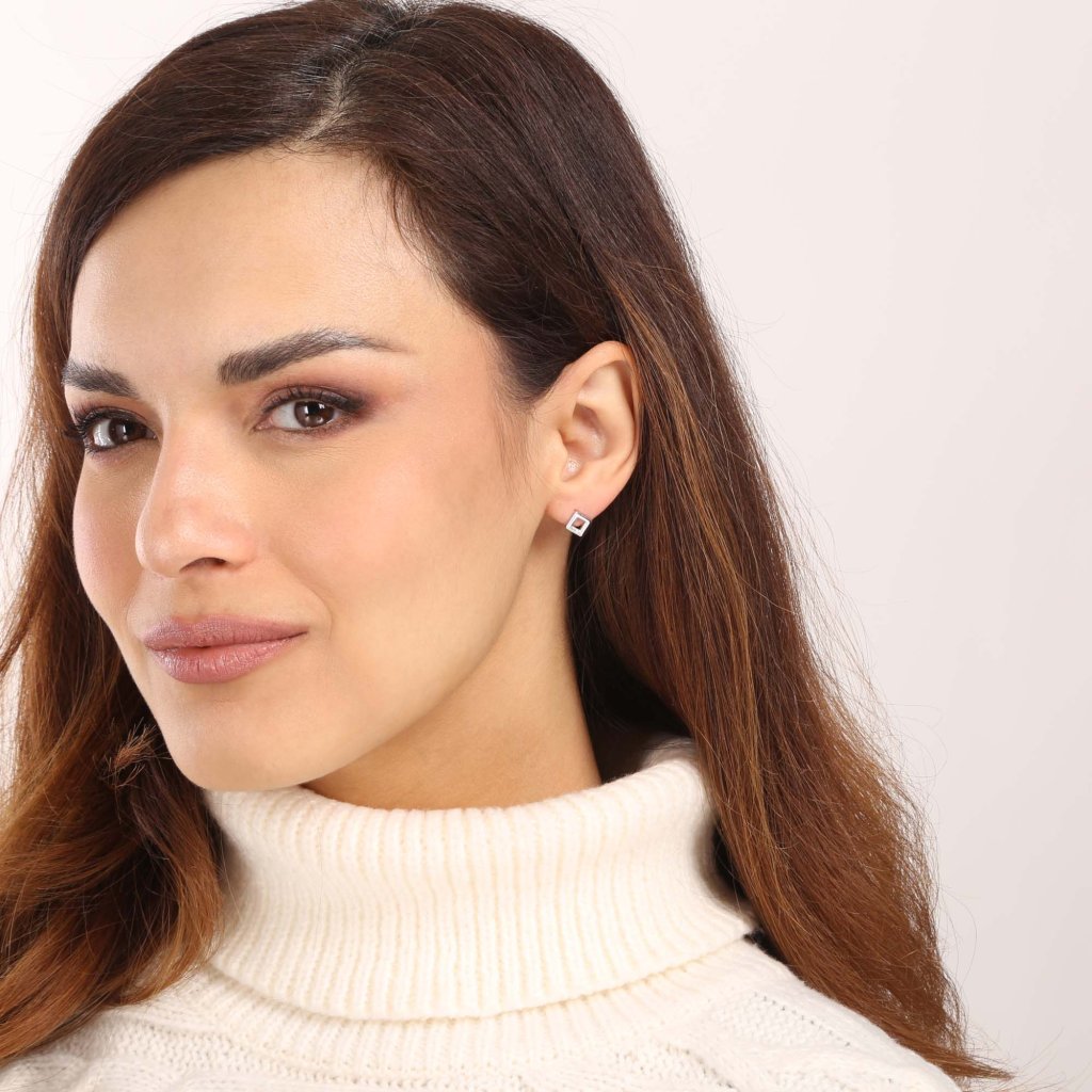 Tieto náušnice v tvare štvorčekov sú elegantným a štýlovým doplnkom pre každú ženu. Jedna strana je osadená zirkónmi , ktoré dodávajú náušniciam luxusný vzhľad.Náušnice sú vyrobené zo striebra o rýdzosti 925/1000 a sú opatrené vrstvou ródia , ktorá šperk ochráni pred sčernením, zožltnutím alebo poškriabaním a majú klasické puzetové zapínanie .