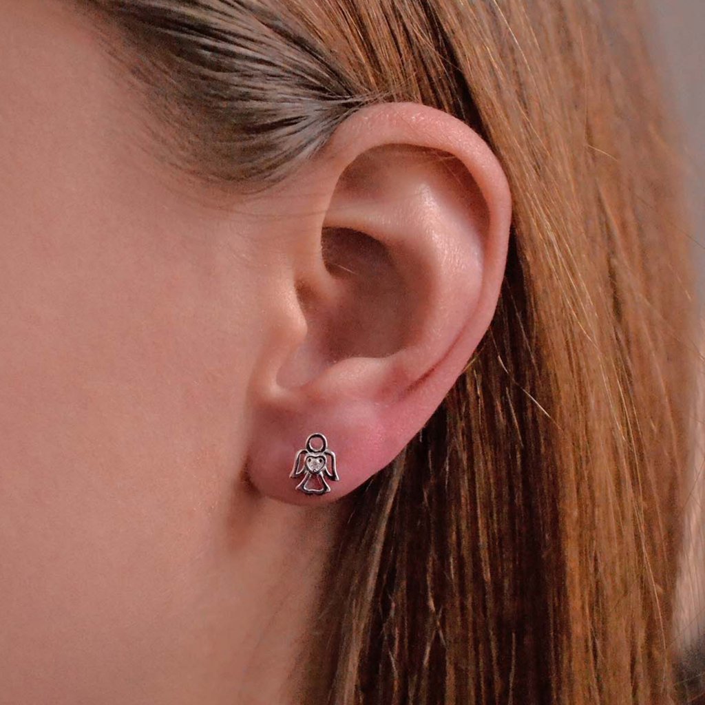 Na náušniciach je strieborný anjel s krídlami, navyše je ozdobený zirkónom v srdiečku. Náušnice neobsahujú nikel , a tak si ho bez obáv môžu vziať aj alergici.