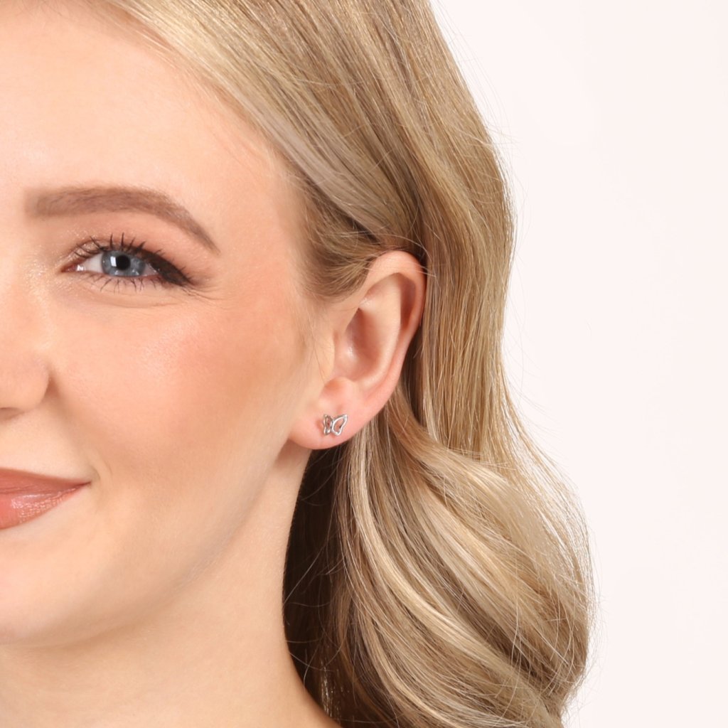 Tieto zaujímavé a jemné náušnice v tvare motýlika sú tvorené iba obrysom, čo dodáva náušniciam ľahkosť a vzdušnosť. Ideálne na každodenné nosenie aj na špeciálne príležitosti.Sú vyrobené zo striebra o rýdzosti 925/1000 a sú opatrené vrstvou ródia , ktorá šperk ochráni pred sčernením, zožltnutím alebo poškriabaním a majú klasické puzetové zapínanie . Šperk 61040 neobsahuje nikel , a tak sa nemusíte obávať alergickej reakcie.