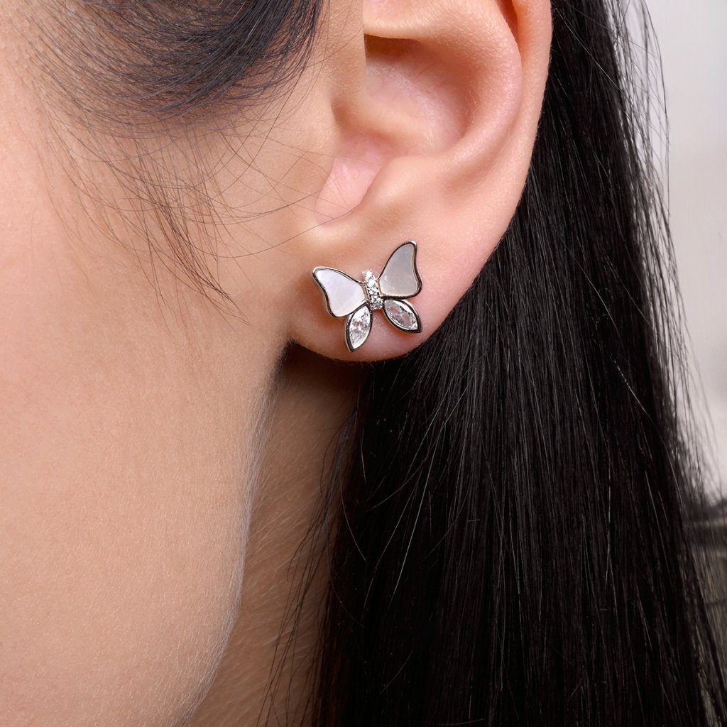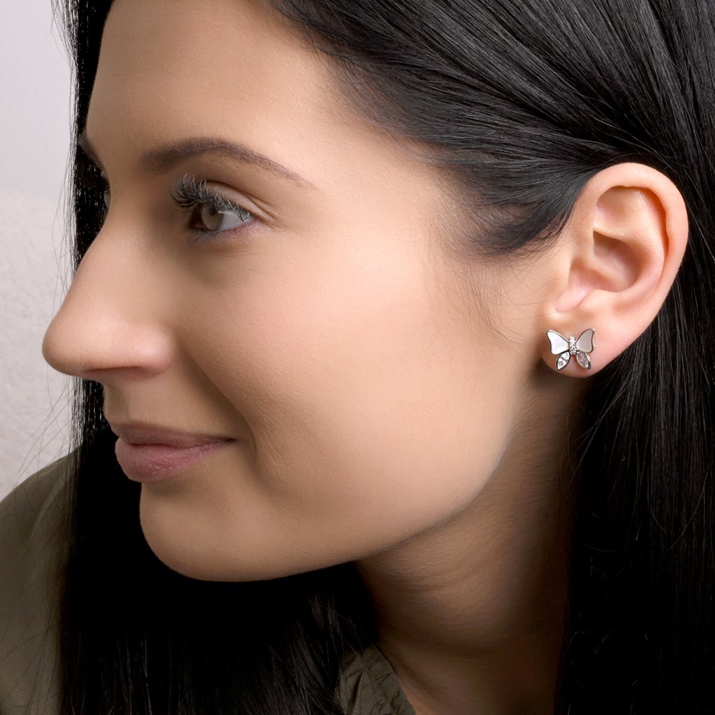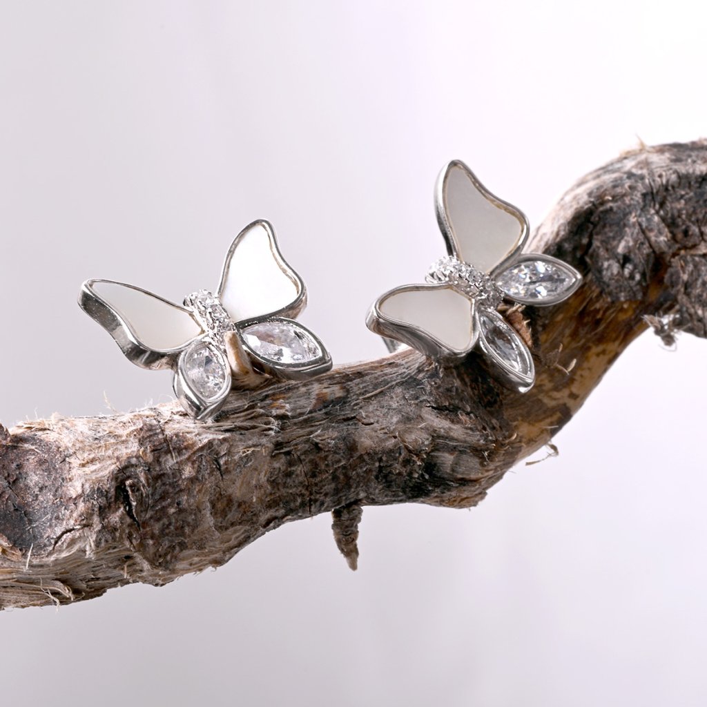 Strieborné náušnice motýliky s perleťou 11804.1