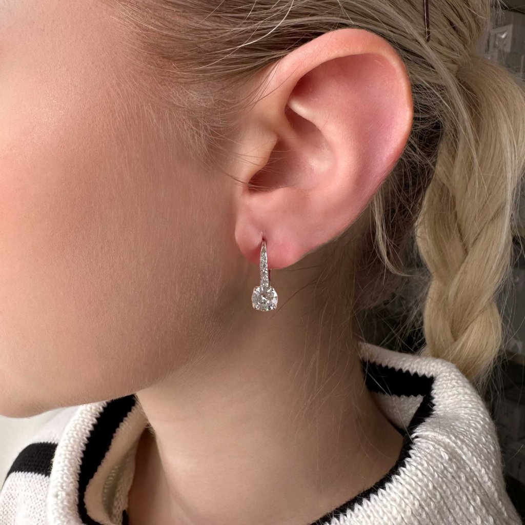 Visiace náušnice 11478.1 sú vyrobené zo striebra rýdzosti 925/1000 , ktorého povrch je upravený ródiom. Rhodium šperk ochráni proti sčernaniu, zožltnutiu alebo poškriabaniu. Dominantný je okrúhly číry zirkón nad ktorým sú ďalšie malé zirkóny vďaka ktorým sa náušnice pekne trblietajú. Zapínanie je na klapku. Šperk neobsahuje nikel , a tak sa nemusíte obávať žiadne alergické reakcie.
