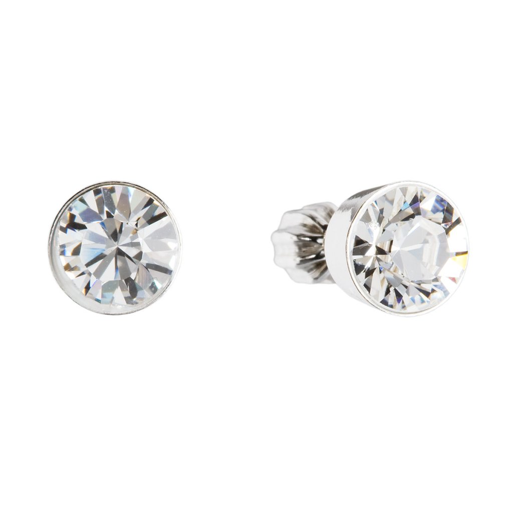 Strieborné náušnice pecka s kryštálmi Preciosa biele okrúhle 31113.1 crystal
