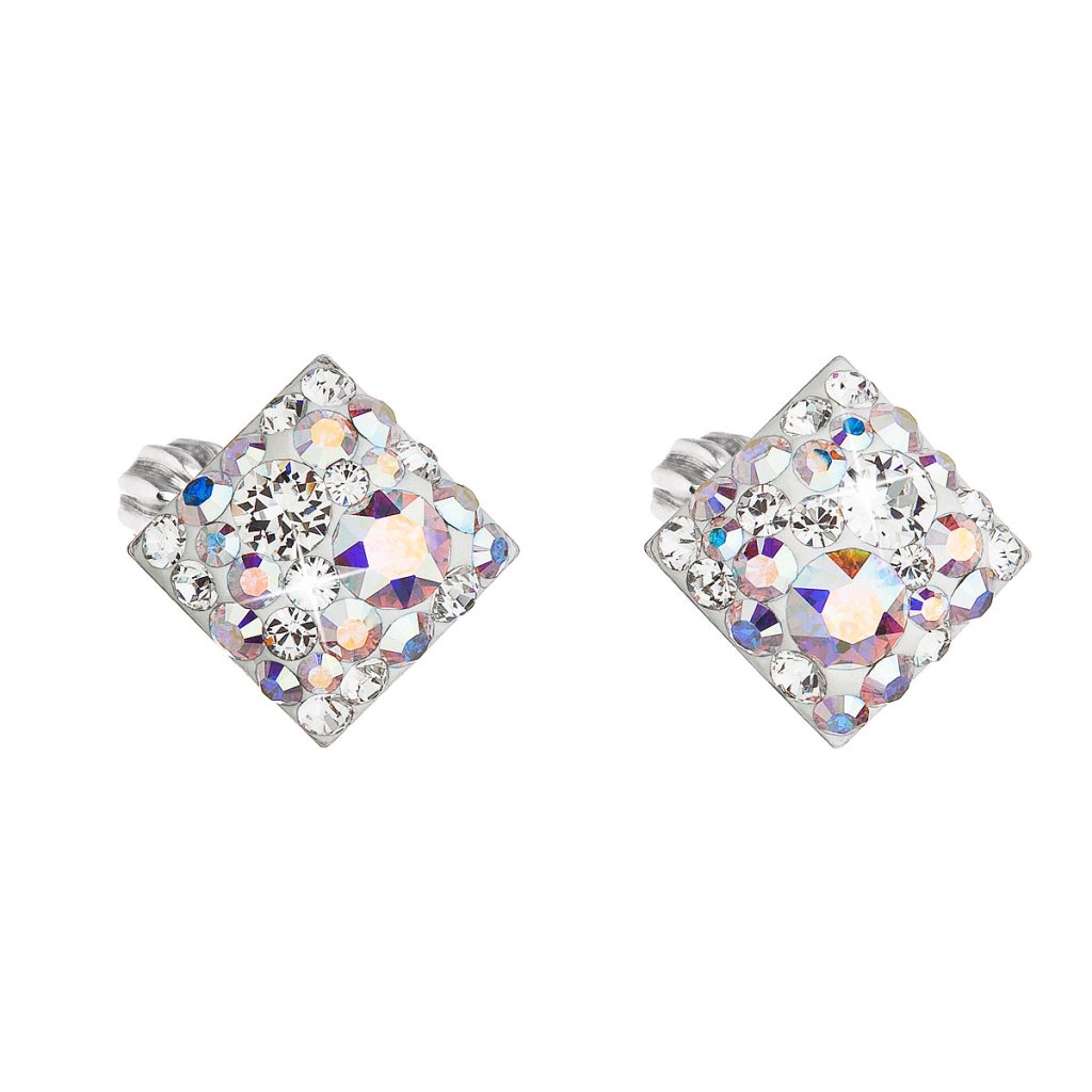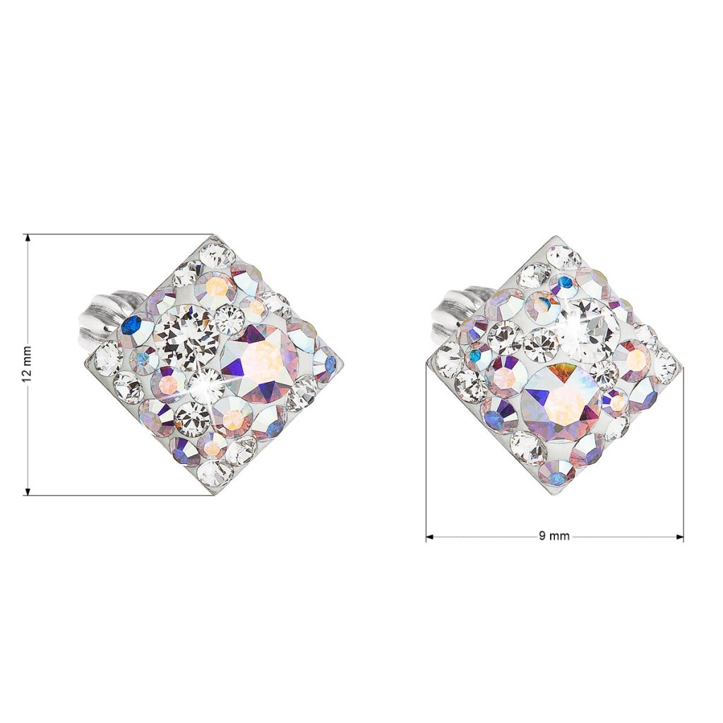 Strieborné náušnice pecka s kryštálmi Swarovski ab efekt kosoštvorec 31169.2