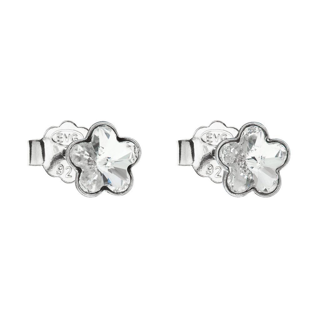 Strieborné náušnice pecka s kryštálmi Swarovski biela kvietka 31080.1