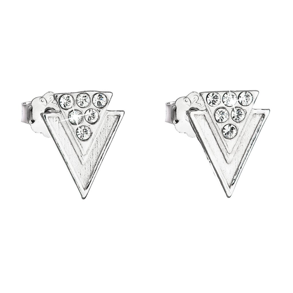 Ozdobte svoje uši originálnym šperkom, ktorý zaujme na prvý pohľad . Za nás môžeme odporučiť zaujímavo spracované náušnice v tvare trojuholníka s niekoľkými Swarovski kryštálmi.Náušnice typu kôstky 31226.1 sú vyrobené zo striebra o rýdzosti 925/1000 s povrchovou úpravou ródiom zaujmú svojim netradičným vyhotovením v tvare dvoch do seba zapadajúcich trojuholníkov zdobených 6 Swarovski kryštálmi. Kryštály sú v bielej farbe. Náušnice majú zapínanie na puzetu , ktorá ich spoľahlivo ochráni proti nechcenej strate. Do náušníc nie je pridaný žiadny nikel , a tak ich bez obáv môžu nosiť aj ľudia náchylní k alergickej reakcii.