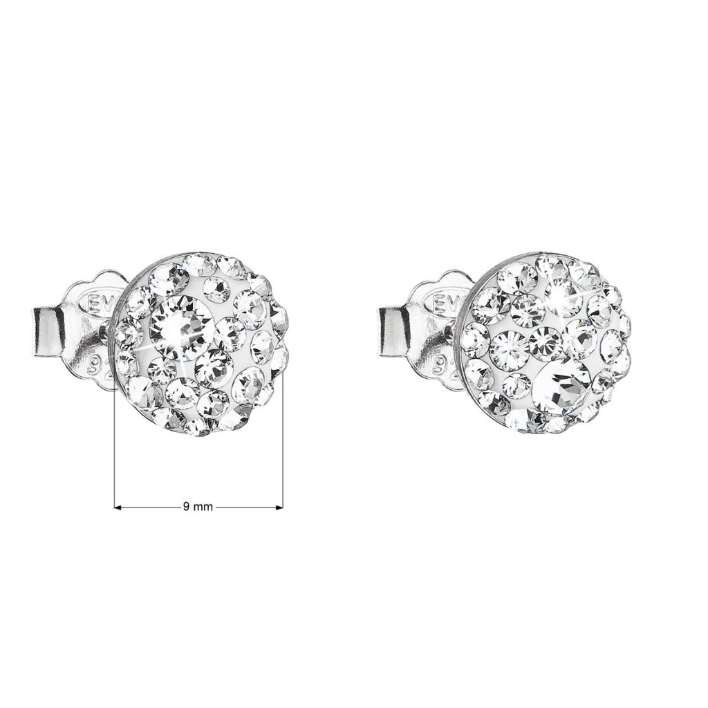 Strieborné náušnice pecka s kryštálmi Swarovski biele okrúhle 31136.1
