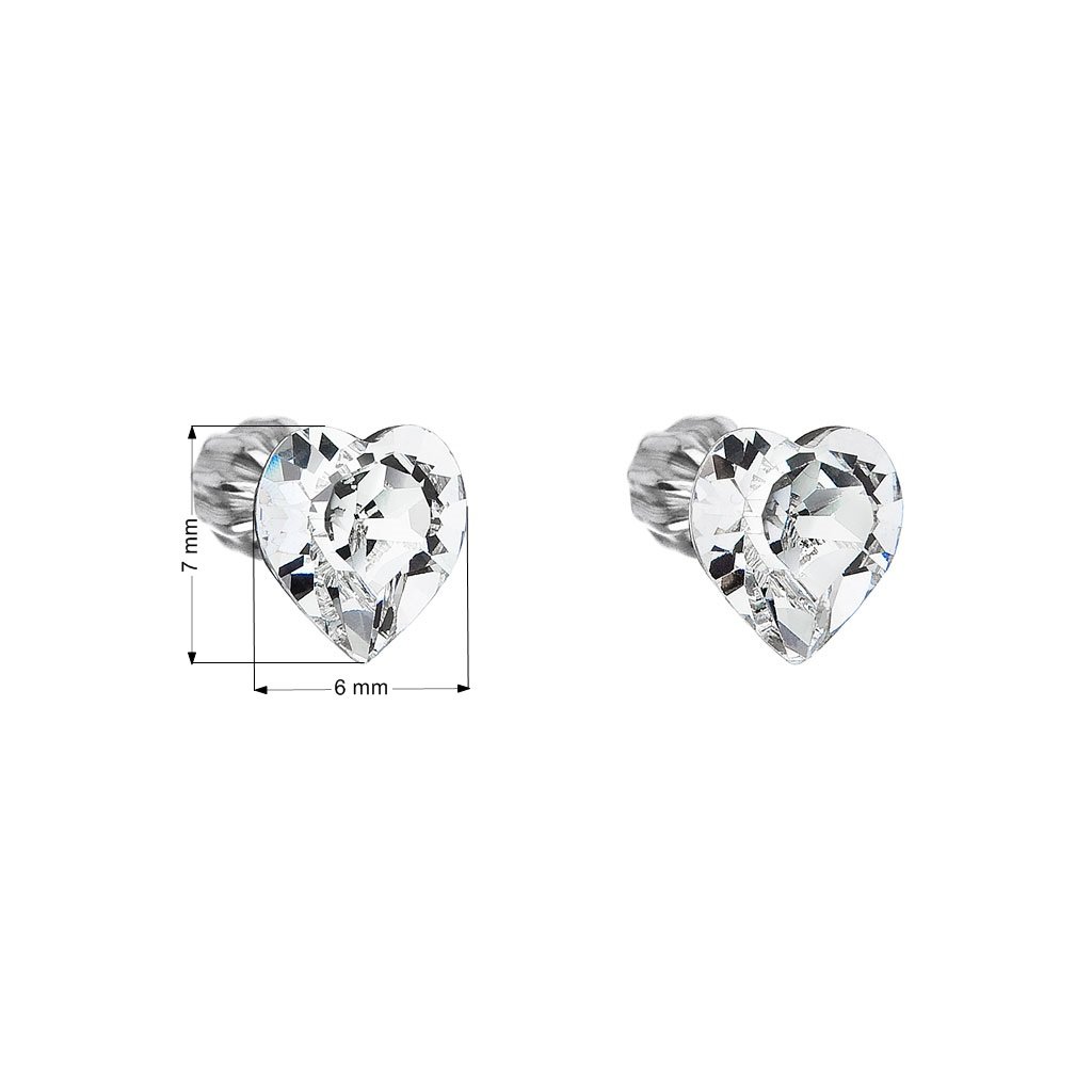 Strieborné náušnice pecka s kryštálmi Swarovski biele srdce 31139.1