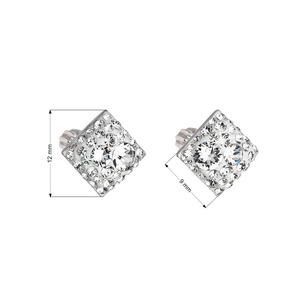 Strieborné náušnice pecka s kryštálmi Swarovski biely kosoštvorec 31169.1