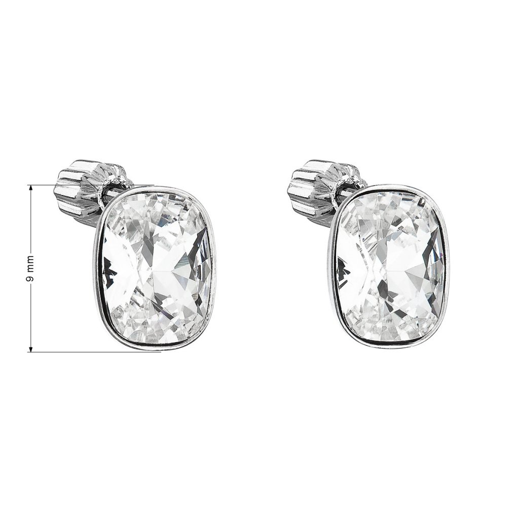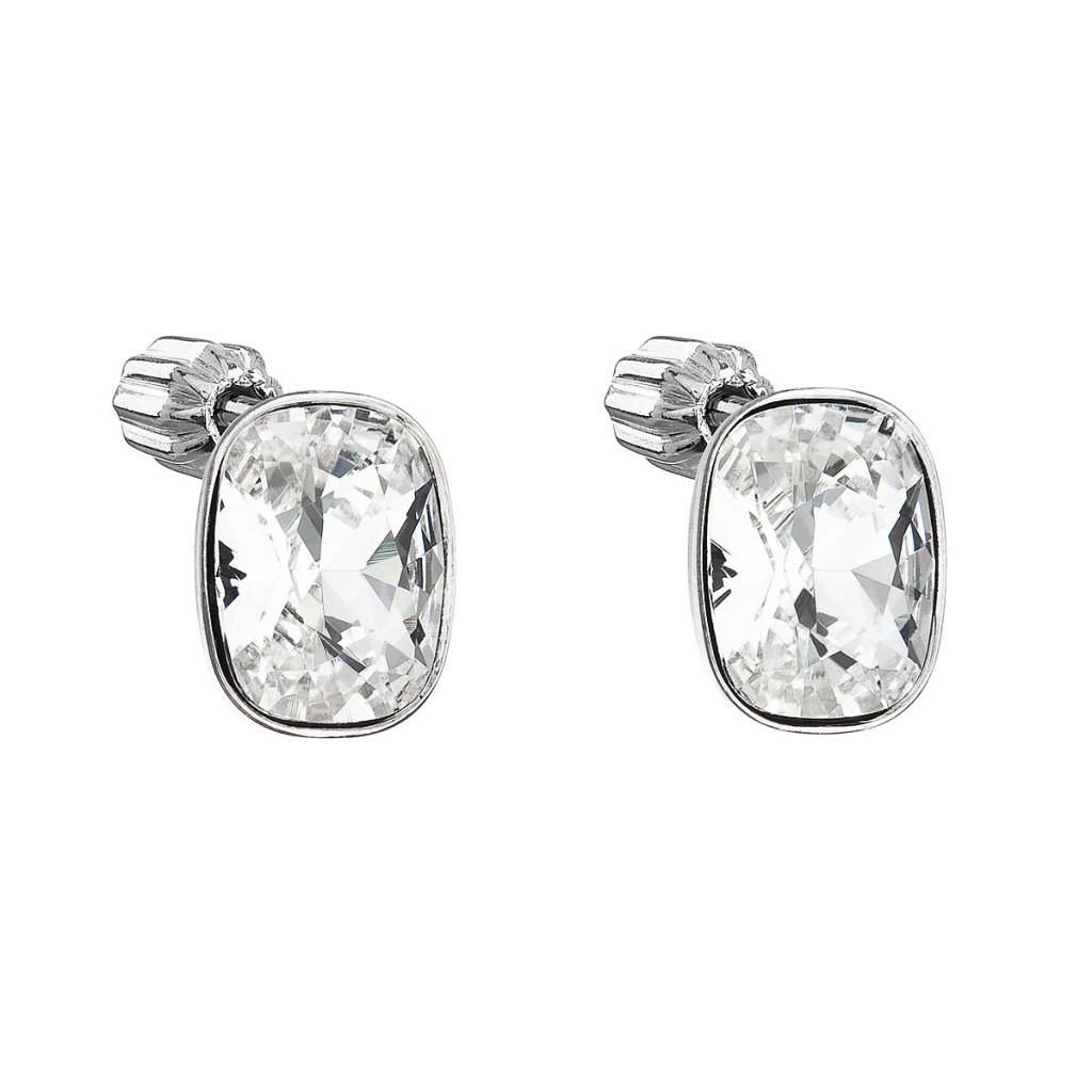 Strieborné náušnice pecka s kryštálmi Swarovski biely obdĺžnik 31279.1