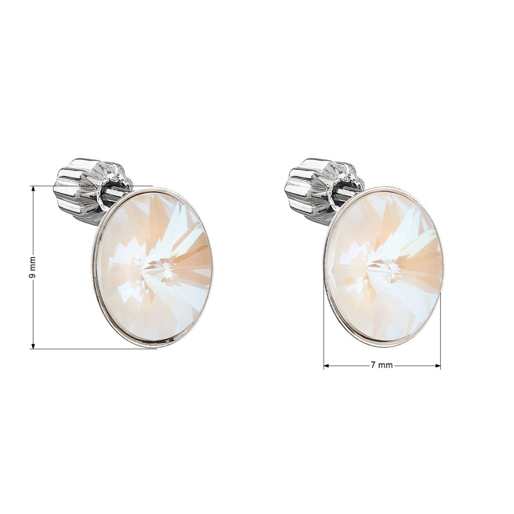Parametre strieborných náušníc pecka s kryštálmi Swarovski biely ovál 31274.4 light grey delite