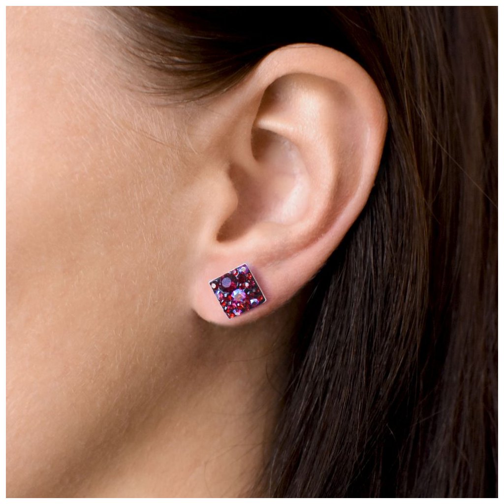 Parametre strieborných náušníc kôstok s kryštálmi Swarovski červený kosoštvorec 31169.3 cherry