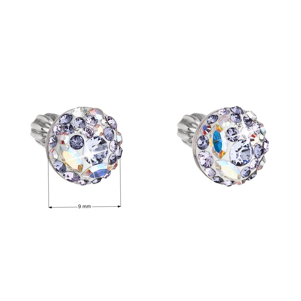 Parametre strieborných náušníc pecka s kryštálmi Swarovski fialové okrúhle 31336.3 violet