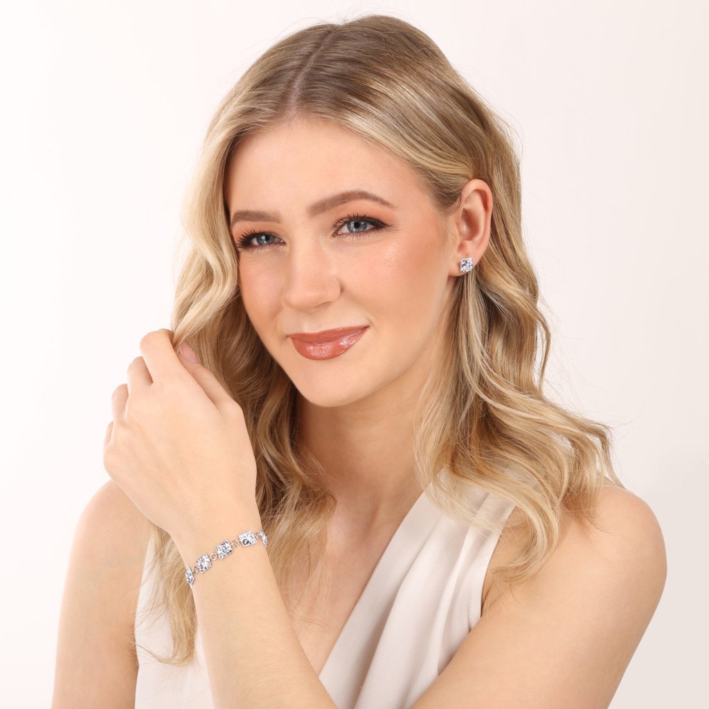 Parametre strieborných náušníc kôstok s kryštálmi Swarovski fialový kosoštvorec 31169.3