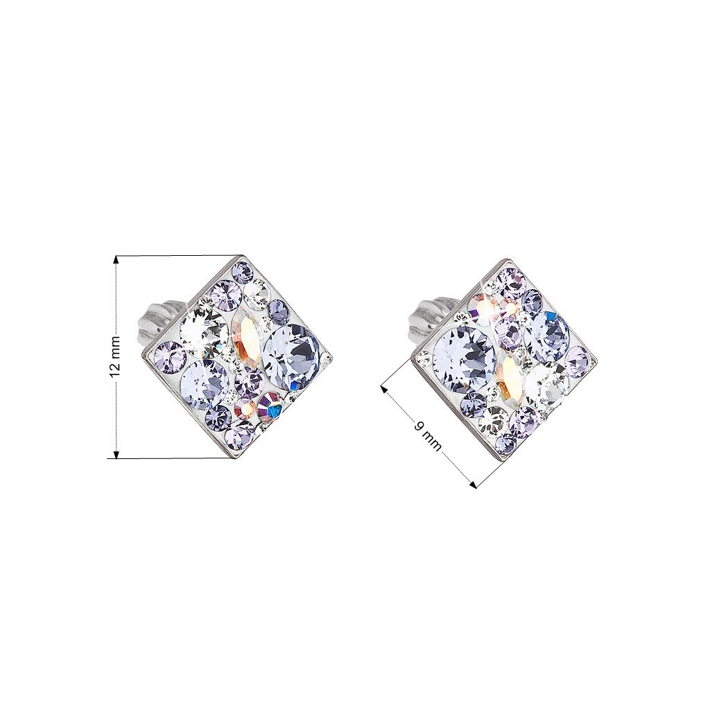Strieborné náušnice pecka s kryštálmi Swarovski fialový kosoštvorec 31169.3