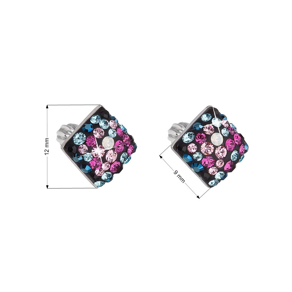 Parametre strieborných náušníc kôstok s kryštálmi Swarovski mix farieb kosoštvorec 31169.4 galaxy