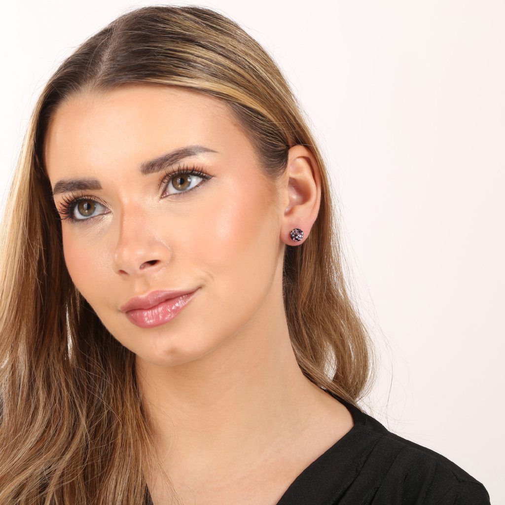 Parametre strieborných náušníc pecka s kryštálmi Swarovski mix farieb okrúhle 31336.3 magic violet