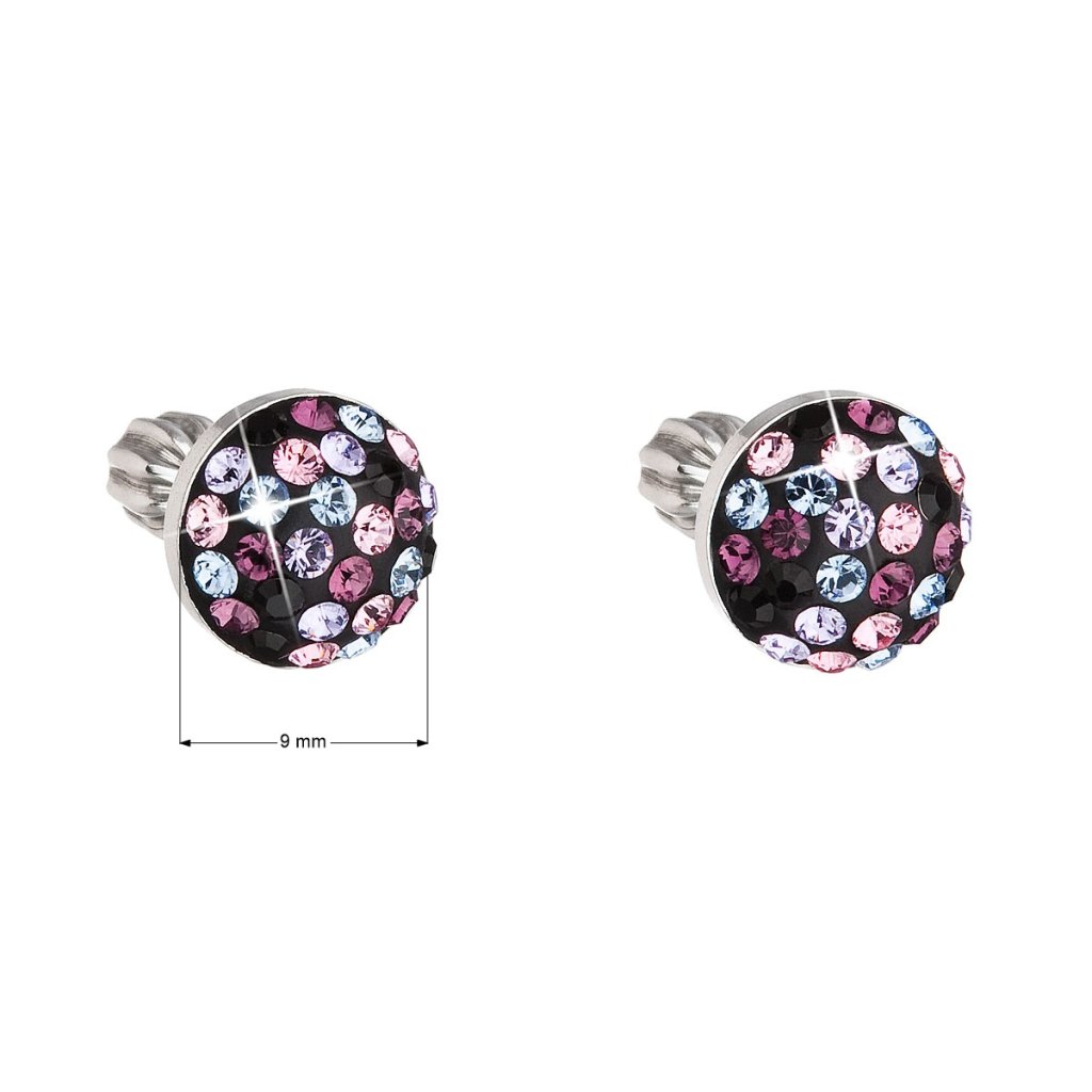 Strieborné náušnice pecka s kryštálmi Swarovski mix farieb okrúhle 31336.3 magic violet