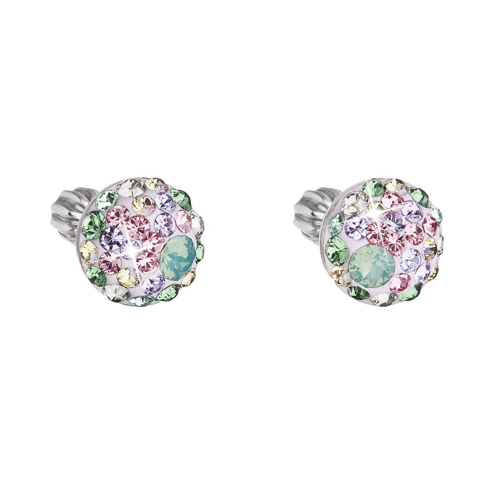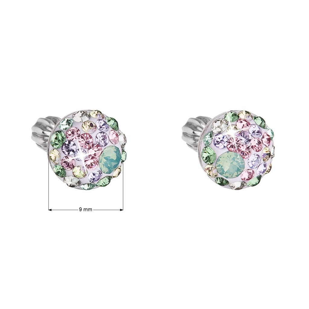 Strieborné náušnice pecka s kryštálmi Swarovski mix farieb okrúhle 31336.3 sakura