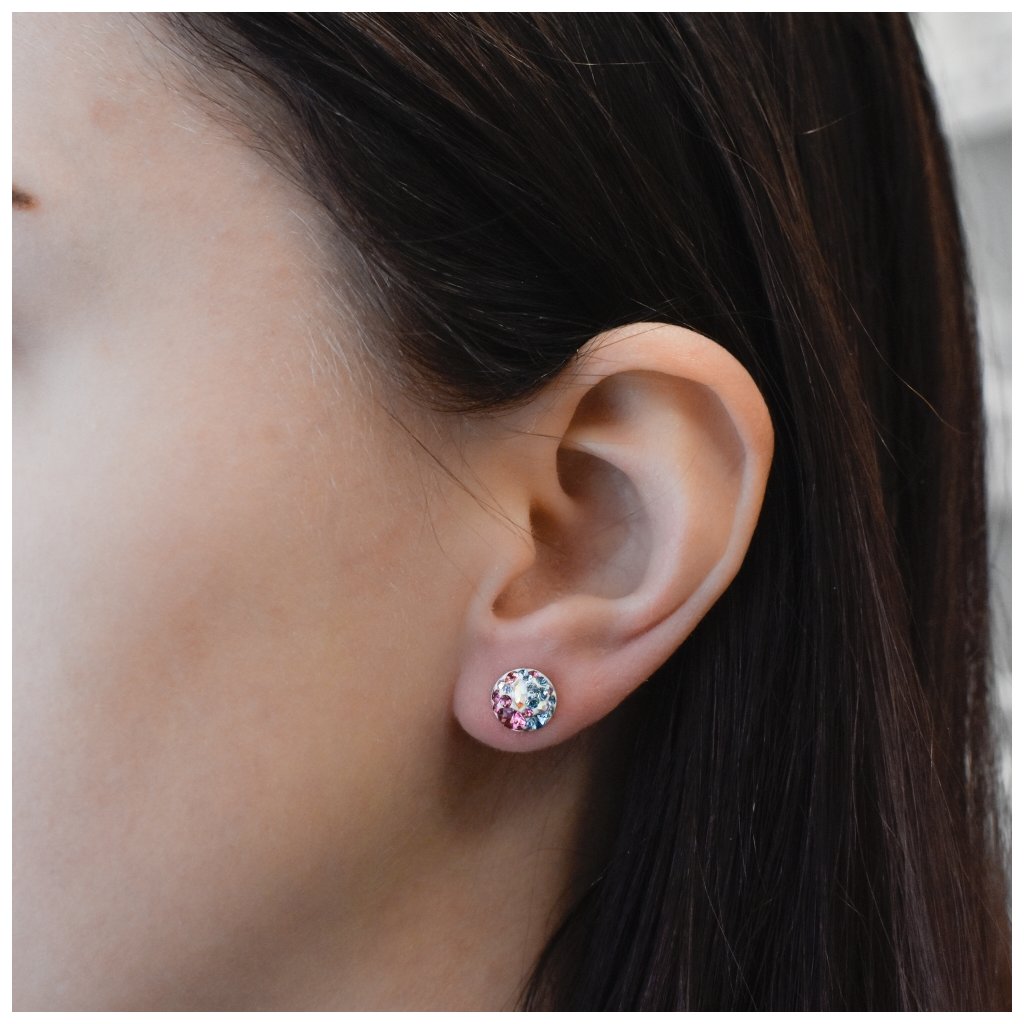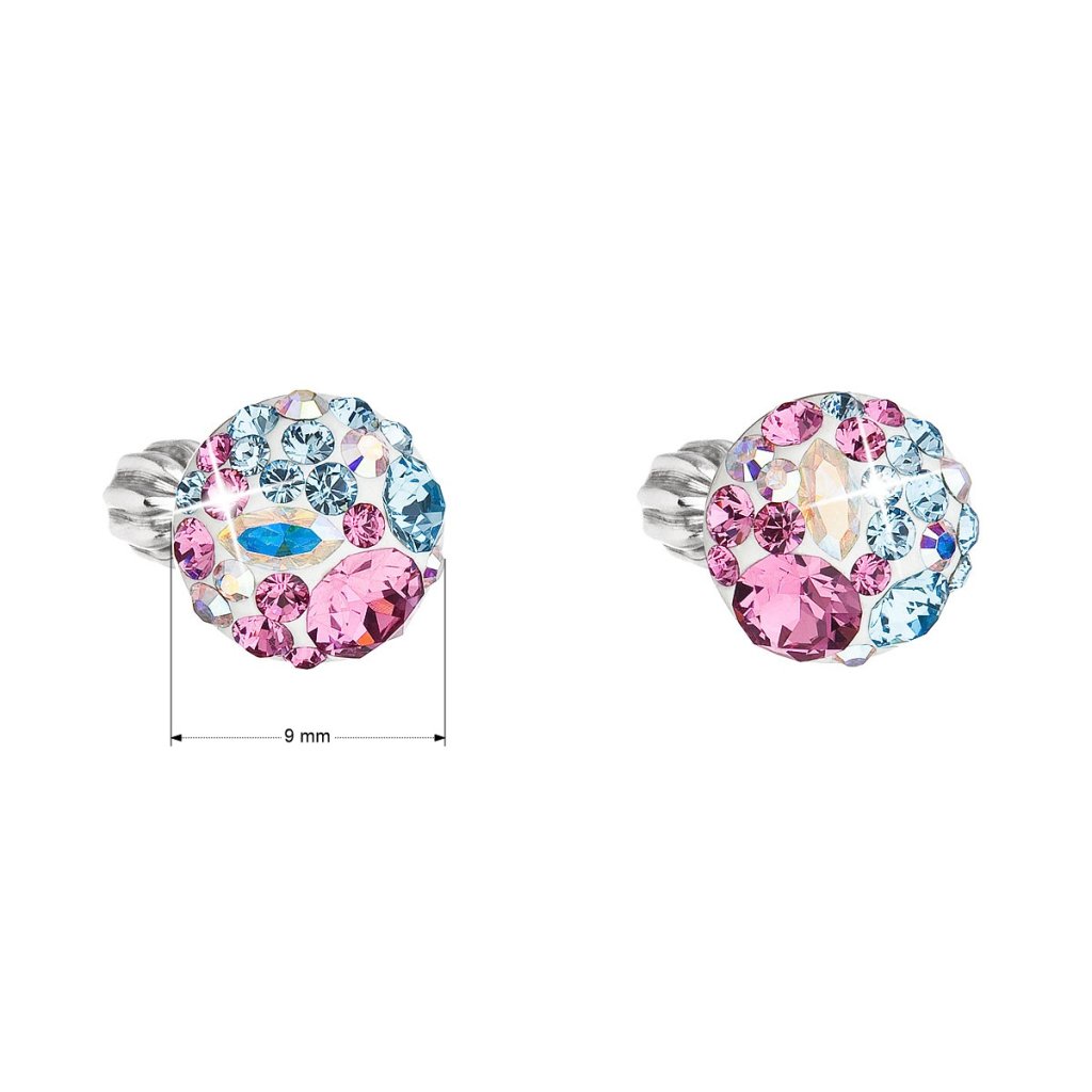 Strieborné náušnice pecka s kryštálmi Swarovski mix farieb okrúhle 31336.3 water lilly