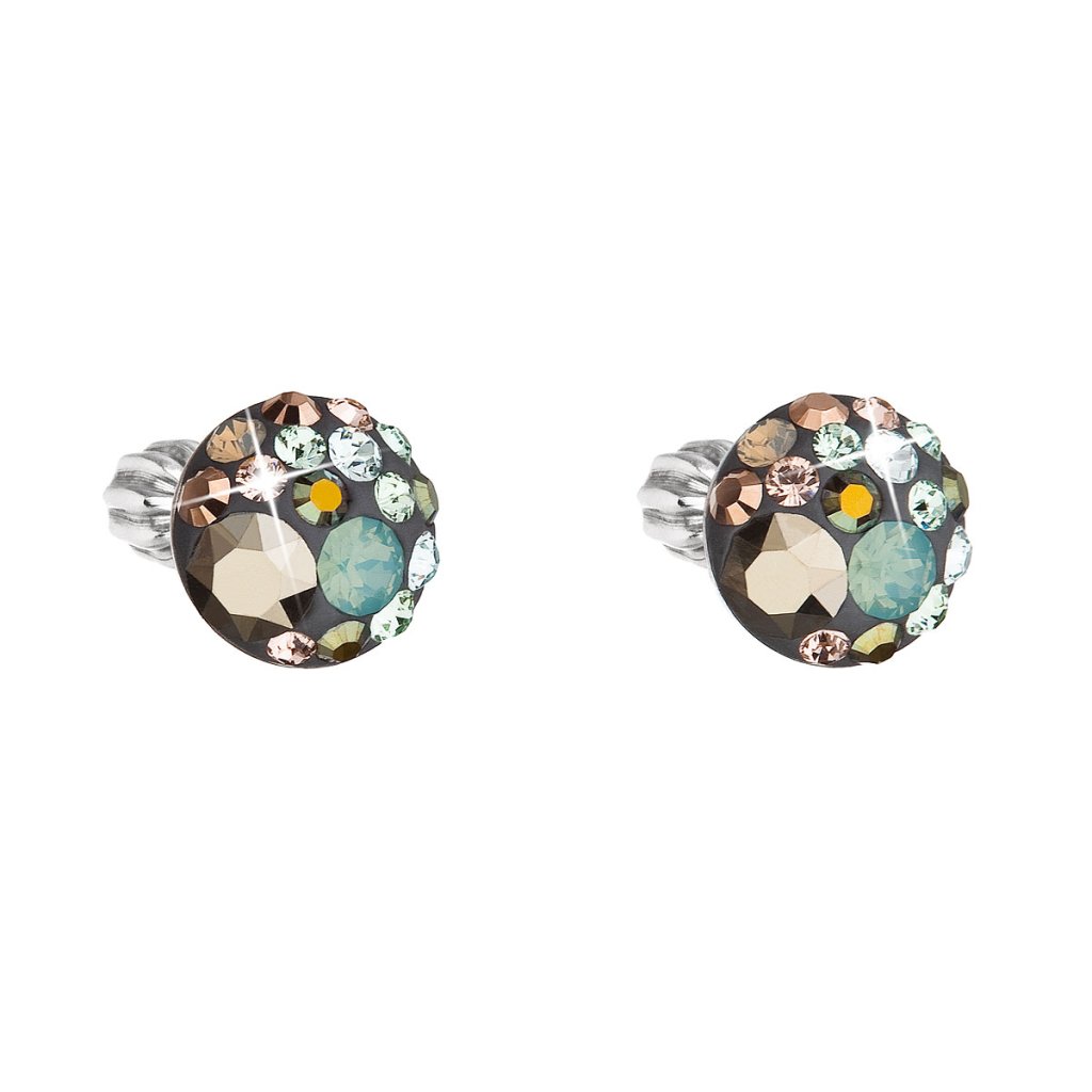 Strieborné náušnice pecka s kryštálmi Swarovski mix farieb okrúhle 31336.4 chameleón