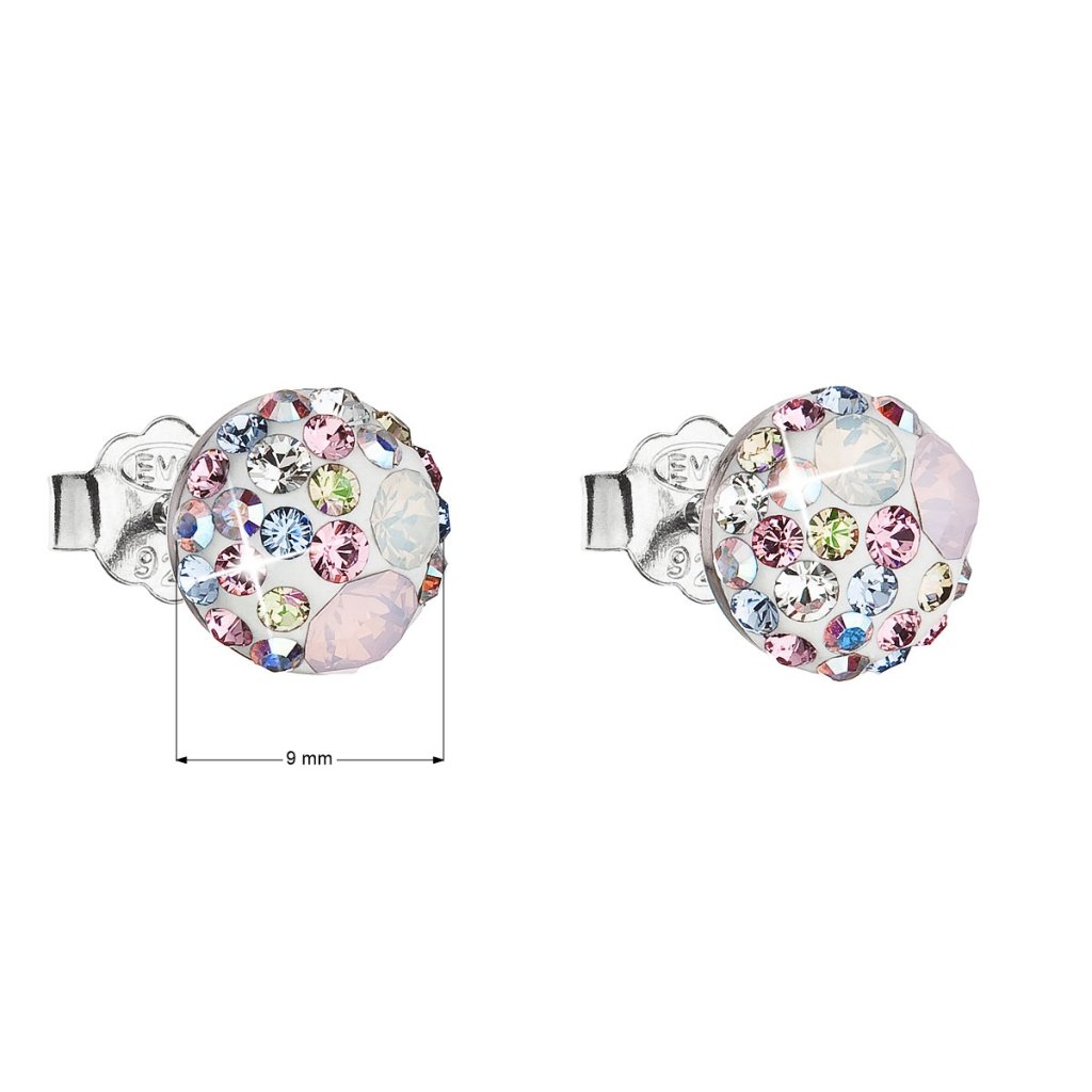 Strieborné náušnice pecka s kryštálmi Swarovski ružové okrúhle 31136.3