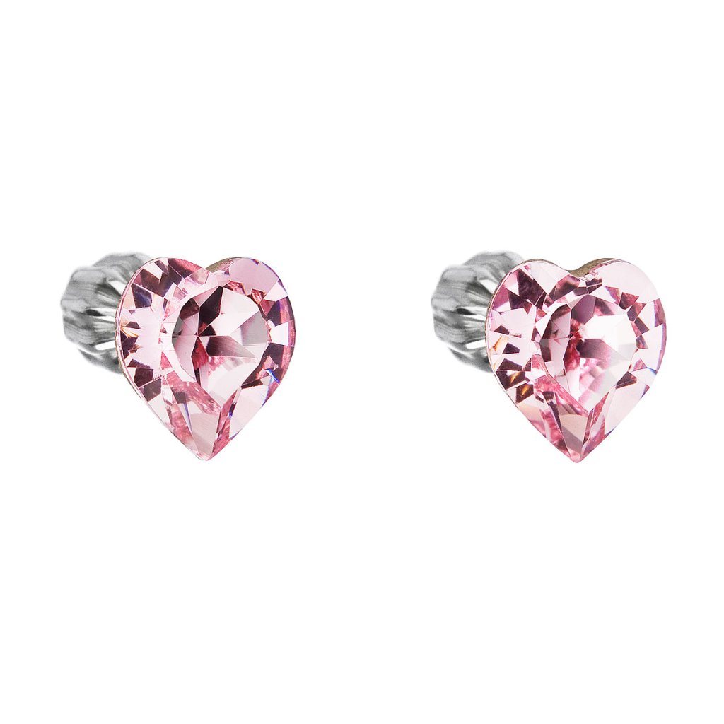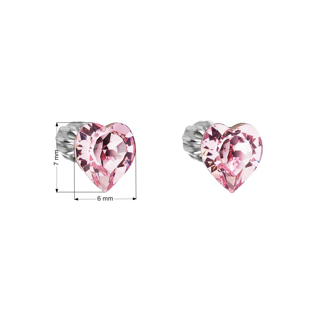 Strieborné náušnice pecka s kryštálmi Swarovski ružové srdce 31139.3