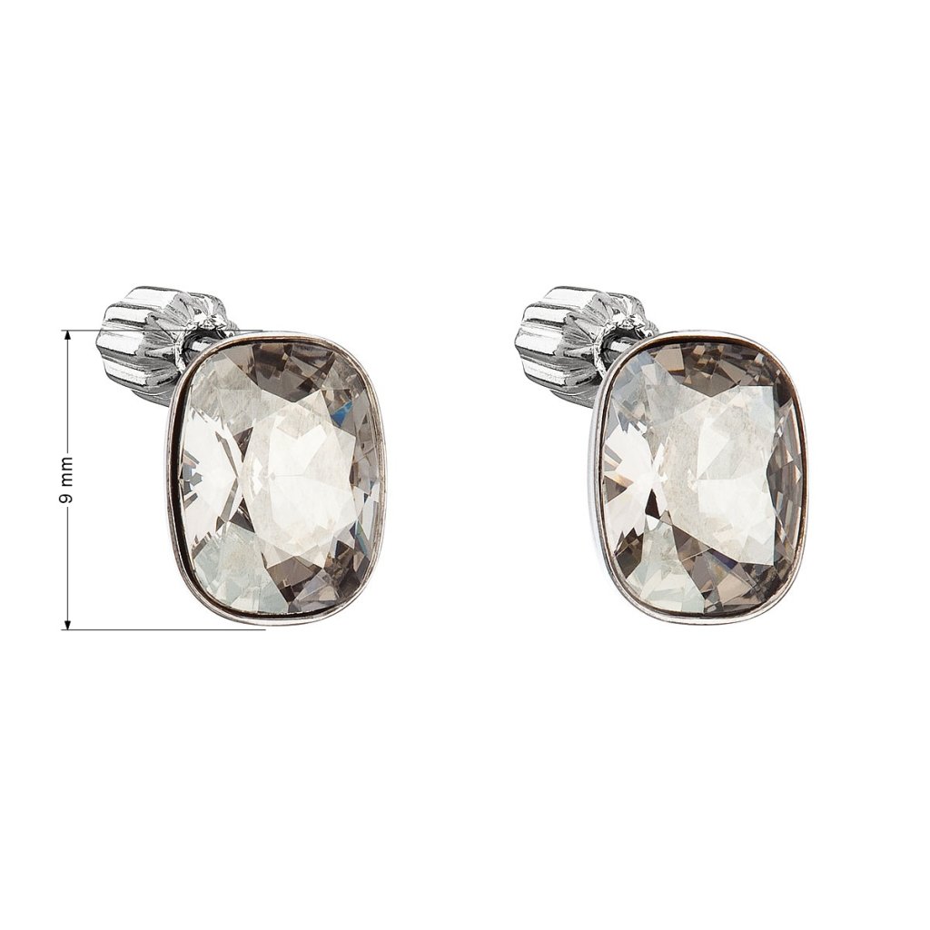 Parametre strieborných náušníc pecka s kryštálmi Swarovski šedý obdĺžnik 31279.5
