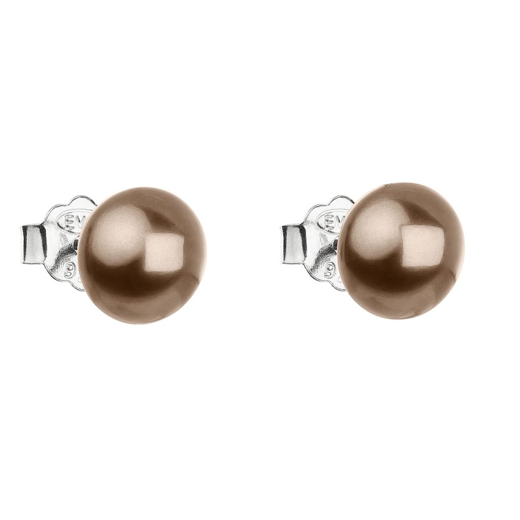Strieborné náušnice pecka s perlou Swarovski hnedé okrúhle 31142.3