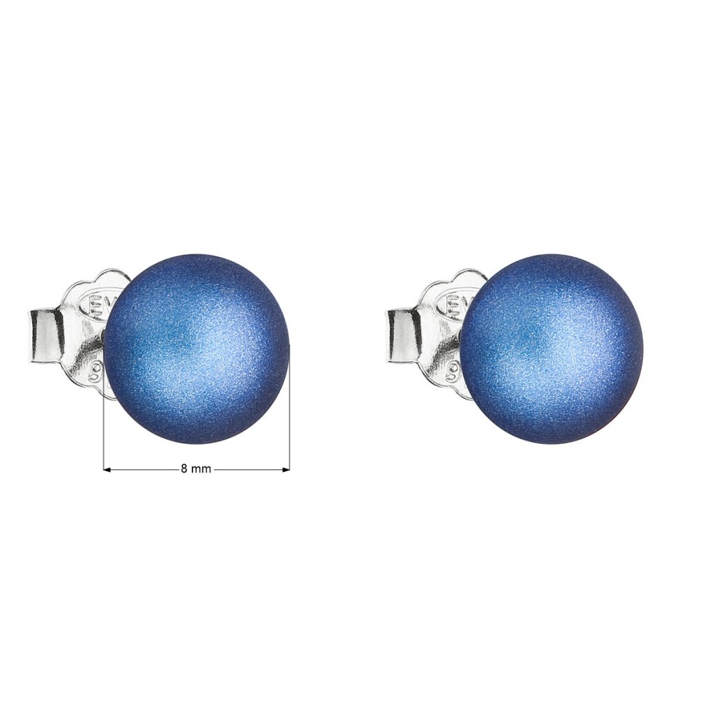 Strieborné náušnice pecka s tmavomodrou matnou perlou 31142.3