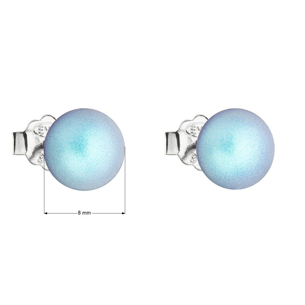 Strieborné náušnice pecka so svetlo modrou matnou Swarovski perlou 31142.3