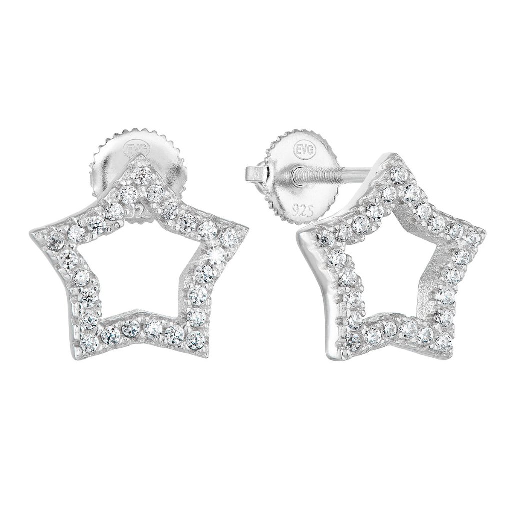 Milujete pozornosť a ste vždy hviezdou večera? Ideálne náušnice pre vás sú práve v tvare hviezdičky.Náušnice 11296.1 sú vyrobené zo striebra o rýdzosti 925/1000 s povrchovou úpravou ródiom a sú zdobené zirkónmi v bielej farbe. Ródium vylepšuje vlastnosti striebra a chráni šperk proti nechceným zmenám vzhľadu. Obvod hviezdy je vysadený jemnými zirkónikmi.