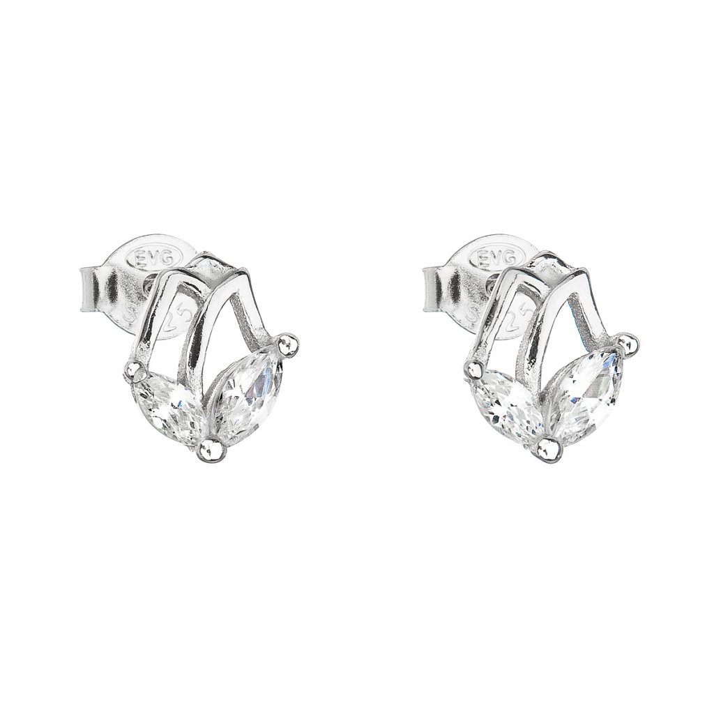 Strieborné náušnice pecka so zirkónom biela kvietka 11030.1