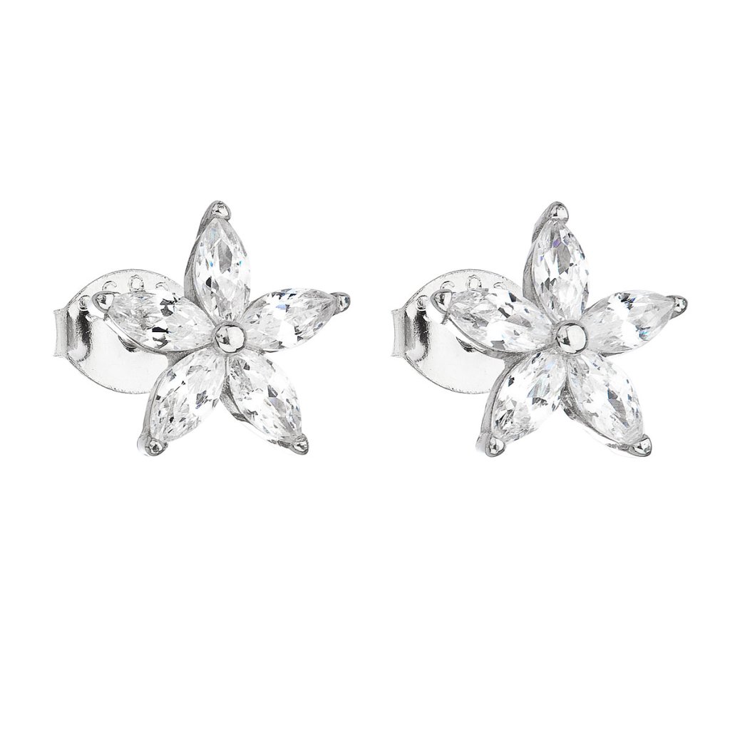 Strieborné náušnice pecka so zirkónom biela kvietka 11069.1