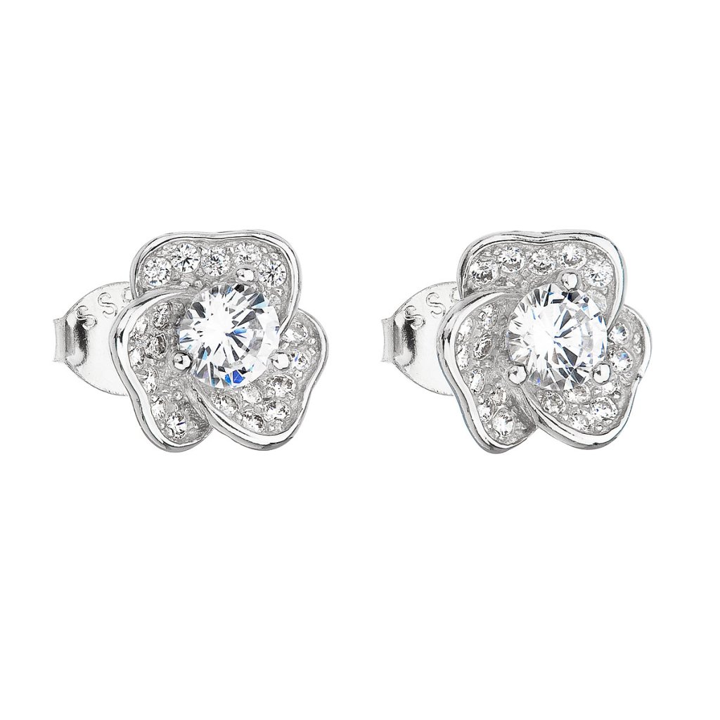 Strieborné náušnice pecka so zirkónom biela kvietka 11145.1