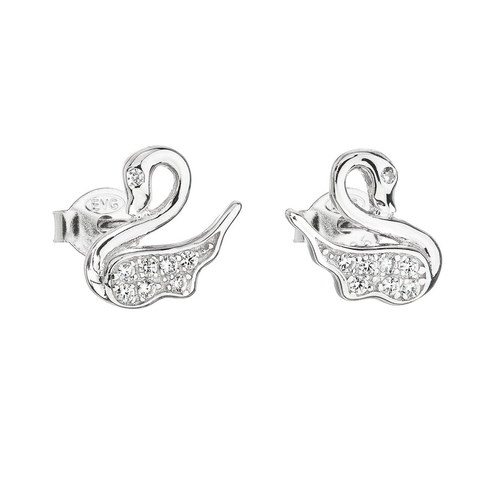 Strieborné náušnice pecka so zirkónom biela labuť 11013.1