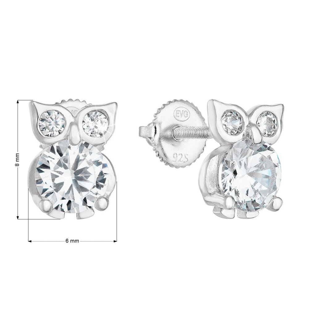 Parametre strieborných náušníc pecka so zirkónom biela sova 11269.1