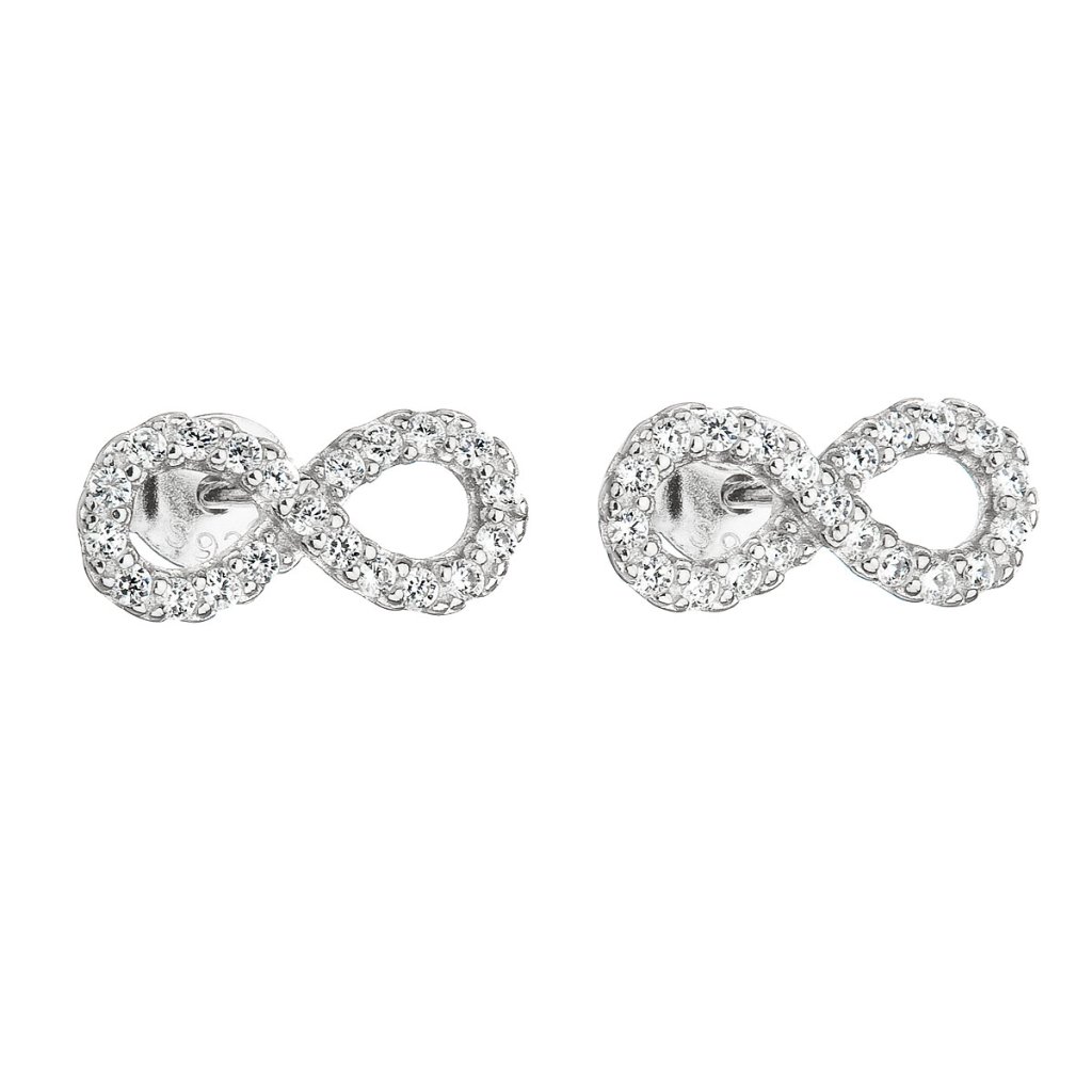 Strieborné náušnice pecka so zirkónom biele nekonečno 11047.1