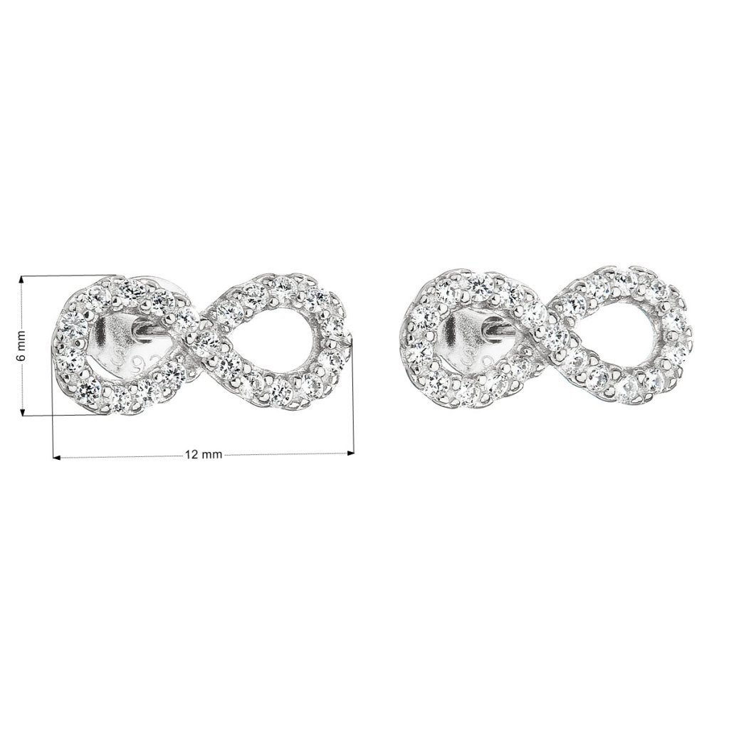 Parametre strieborných náušníc pecka so zirkónom biele nekonečno 11047.1