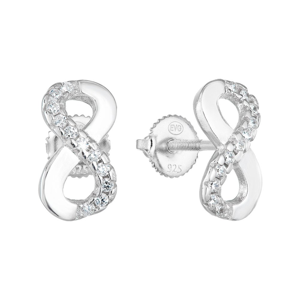Strieborné náušnice pecka so zirkónom biele nekonečno 11255.1