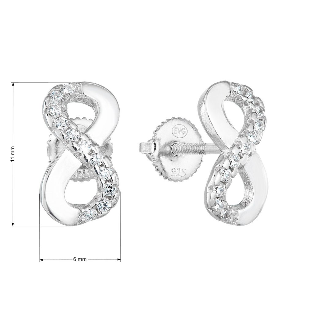 Parametre strieborných náušníc pecka so zirkónom biele nekonečno 11255.1
