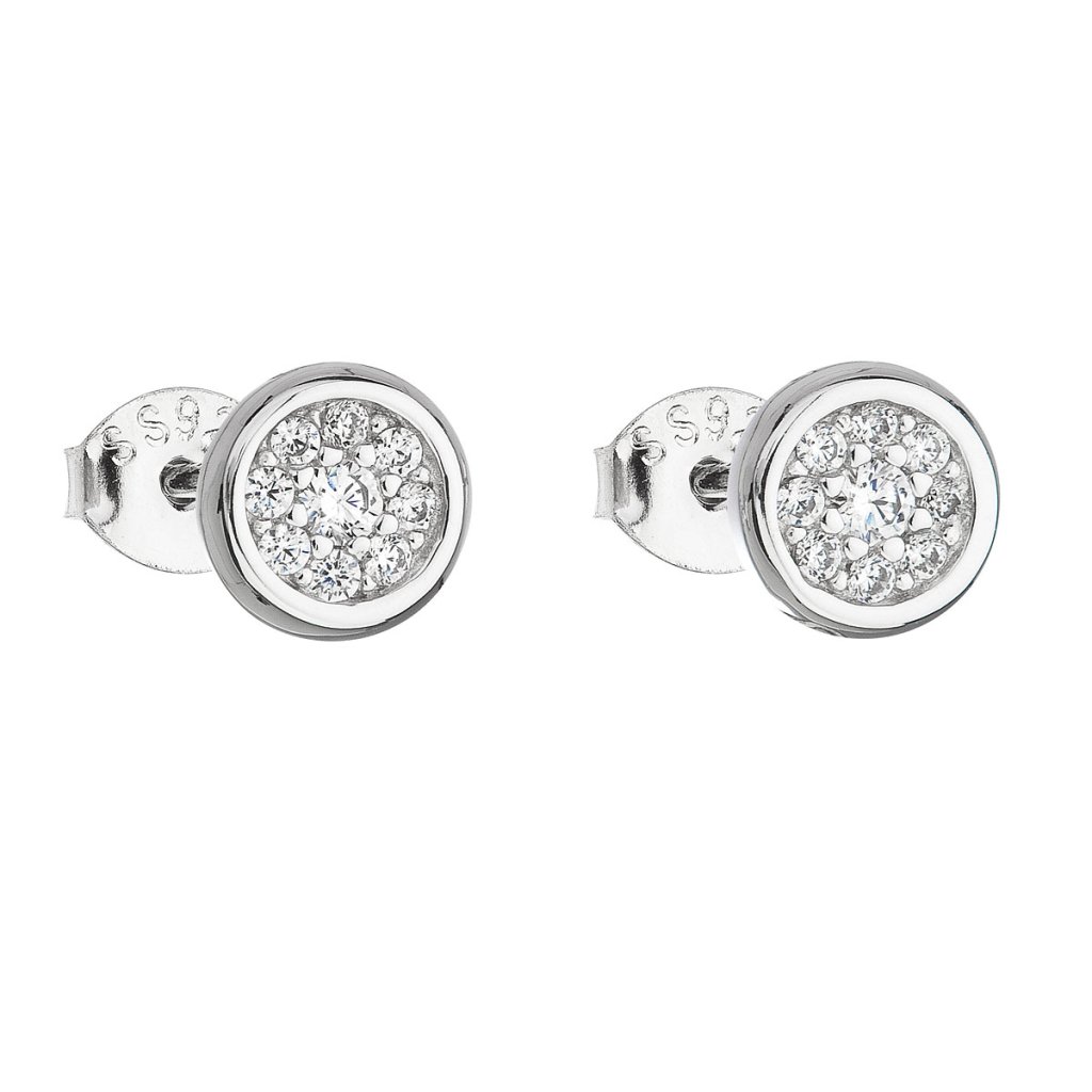 Strieborné náušnice pecka so zirkónom biele okrúhle 11078.1