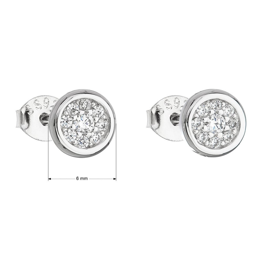 Parametre strieborných náušníc pecka so zirkónom biele okrúhle 11078.1