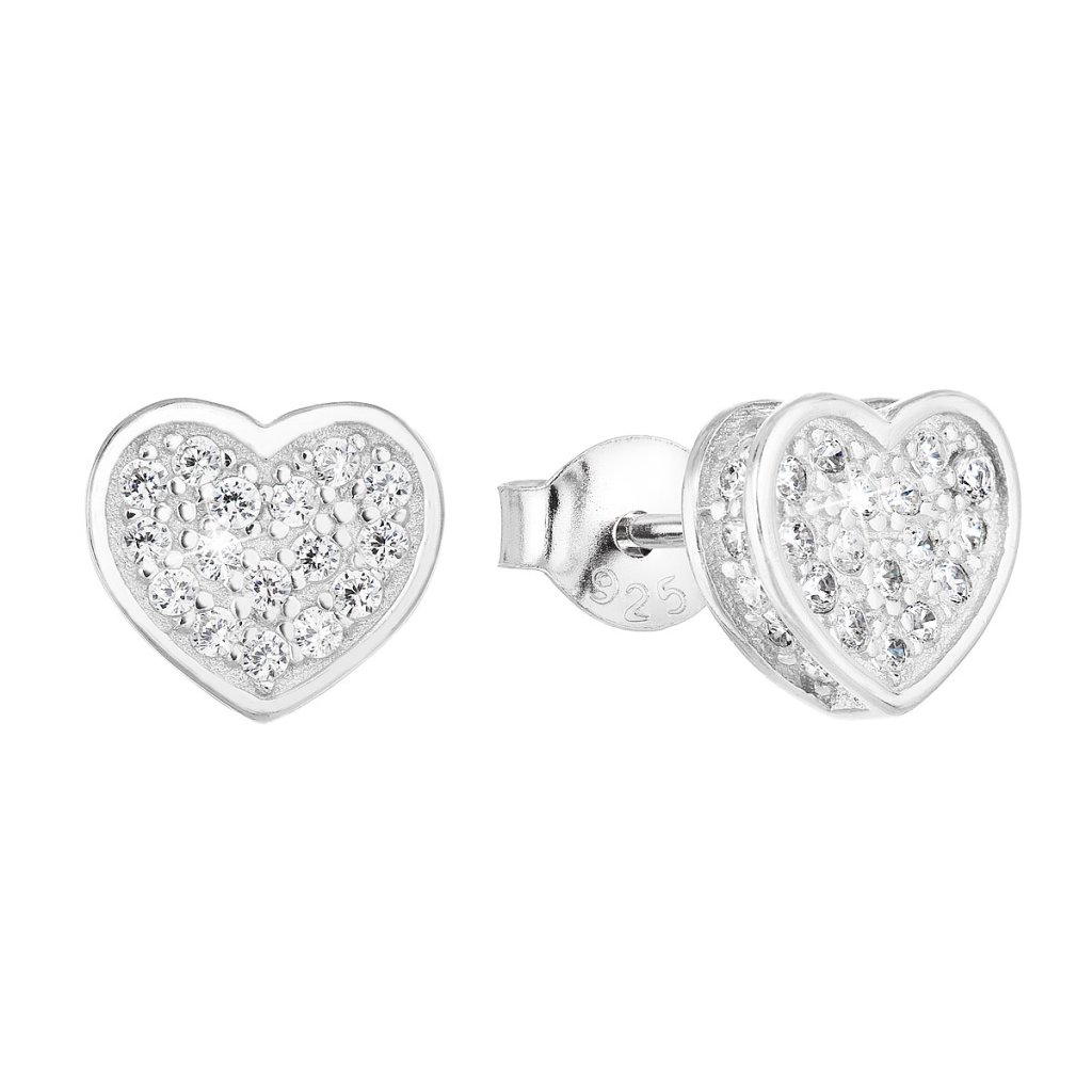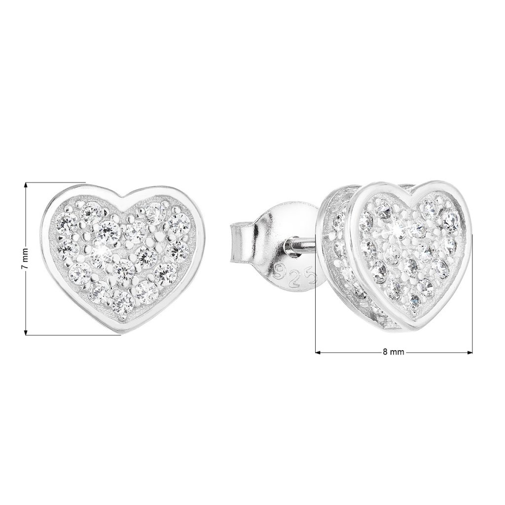 Strieborné náušnice pecka so zirkónom biele srdce 11032.1