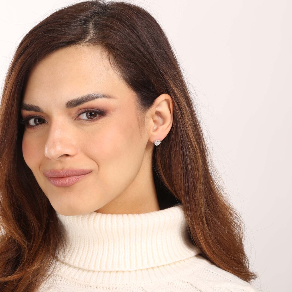 Parametre strieborných náušníc pecka so zirkónom biele srdce 11032.1