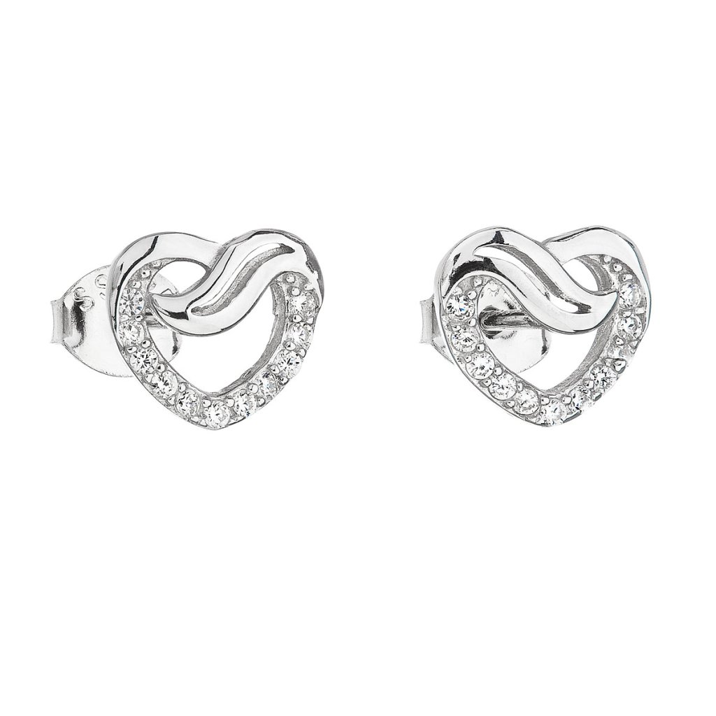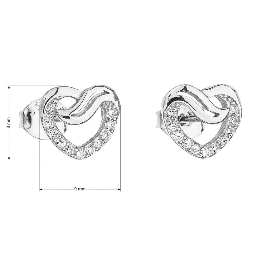 Strieborné náušnice pecka so zirkónom biele srdce 11114.1