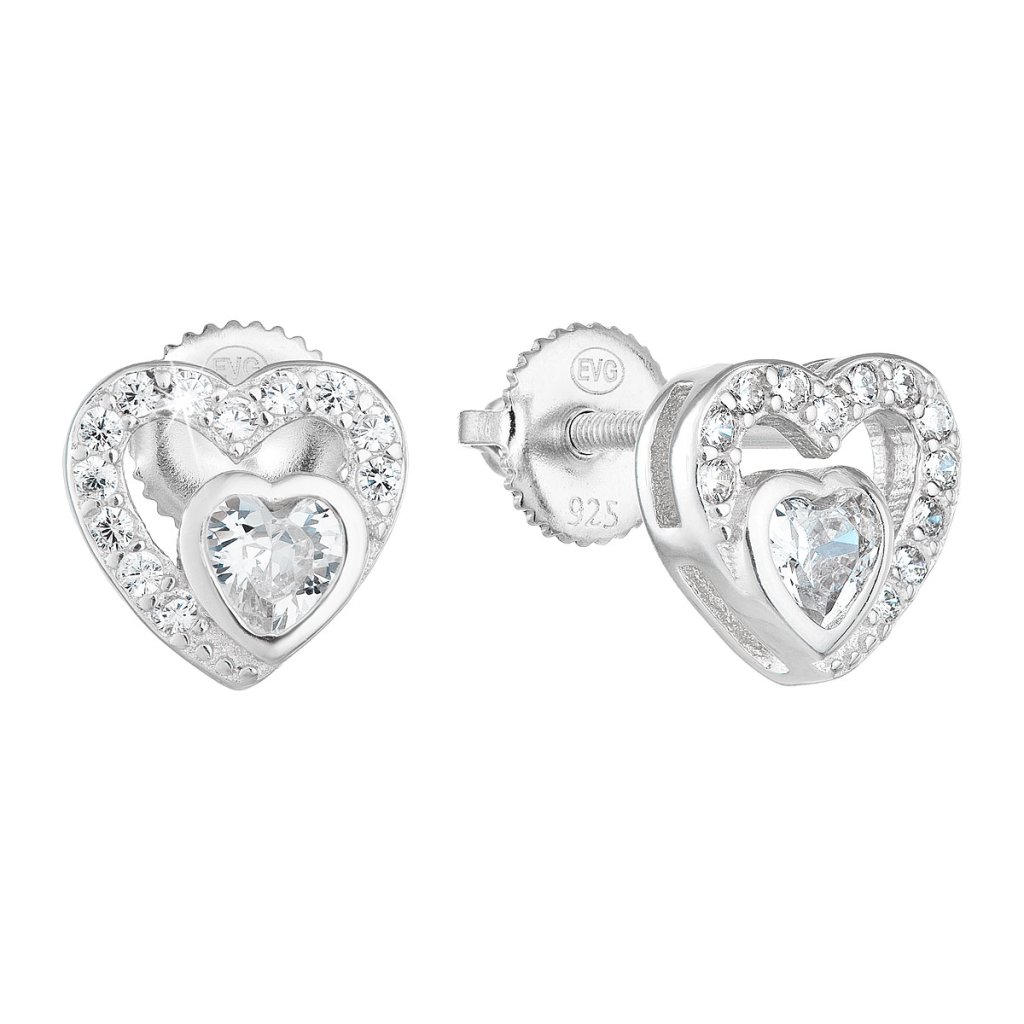 Strieborné náušnice pecka so zirkónom biele srdce 11288.1