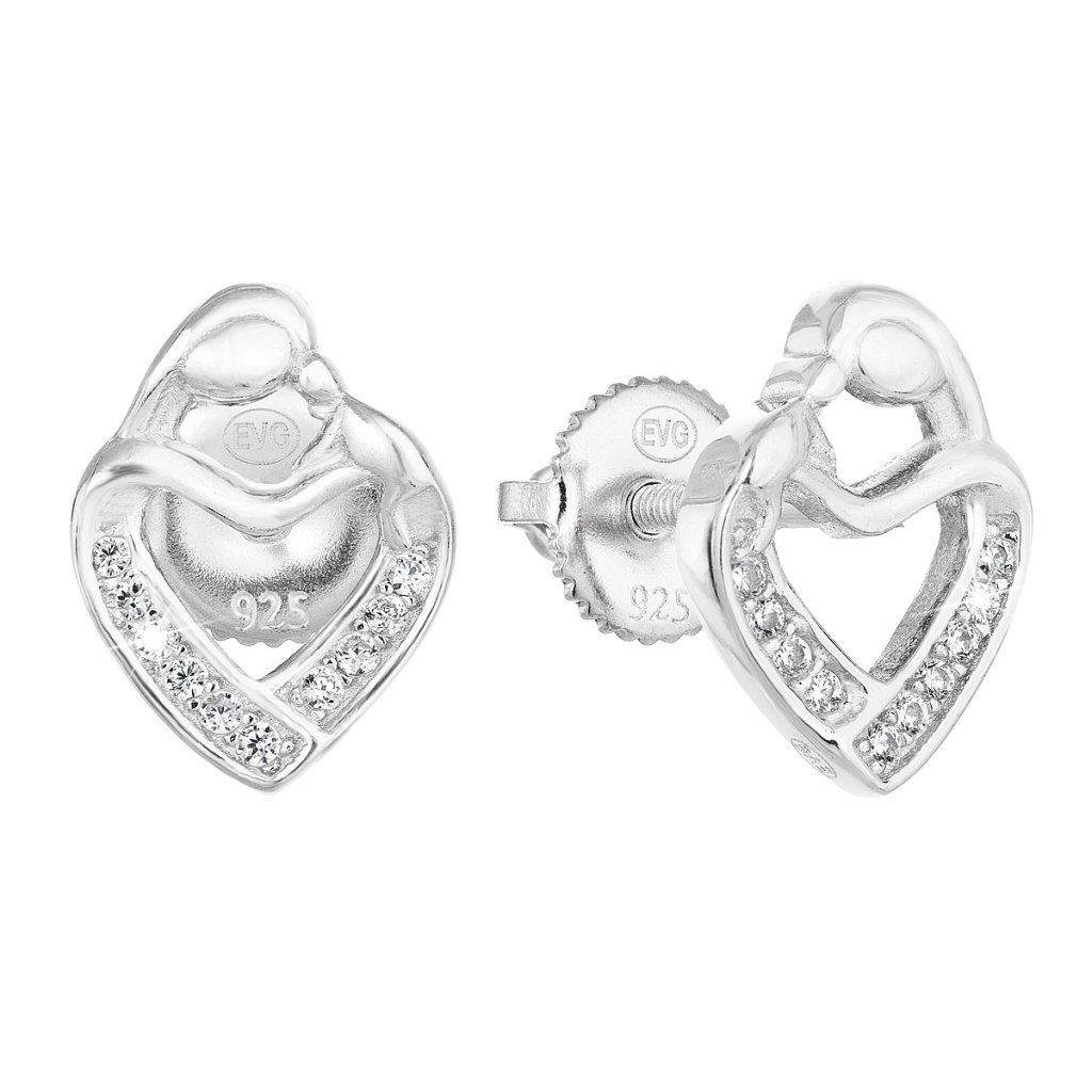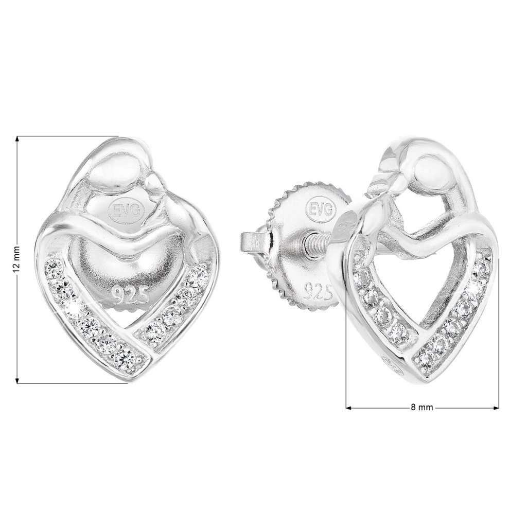 Strieborné náušnice pecka so zirkónom biele srdce 11314.1