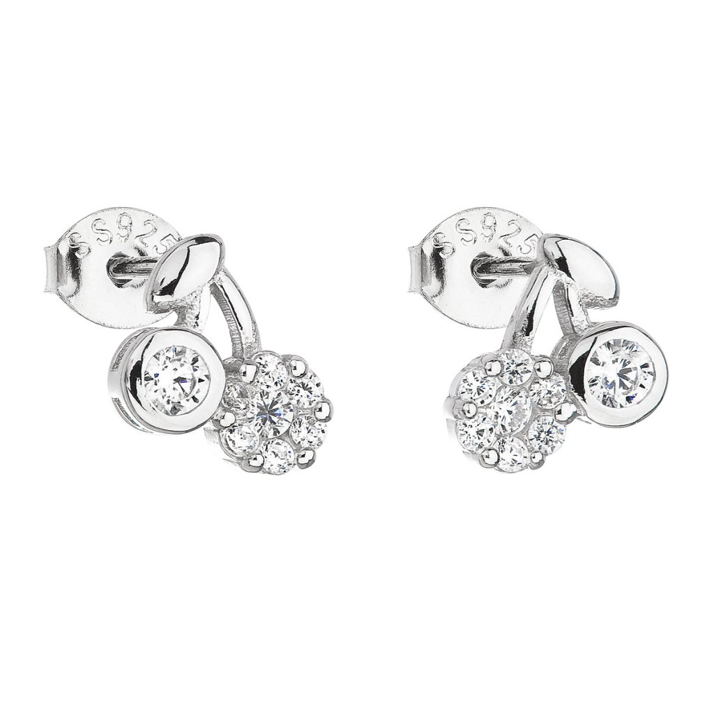 Strieborné náušnice pecka so zirkónom bielej čerešničky 11138.1